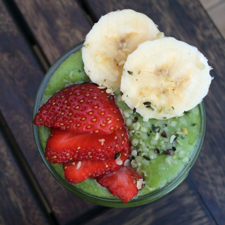 This green is the perfect combination of gnarly greenness and sweetness because lets face it no one wants to be sipping of just kale right? I always like to add at least one sweetener to my smoothie – all natural of course. Because it means I can jam some wilted greens from the fridge without paying the price on the taste buds. Food is meant to be enjoyed so don’t make yourself block your nose and scull a horrific chunky smoothie that doesn’t taste unreal! And why would you when there are so many delish recipes out there. This is my go to green warrior smoothie when I am feeling my body needs an extra boost of greens and veggies.