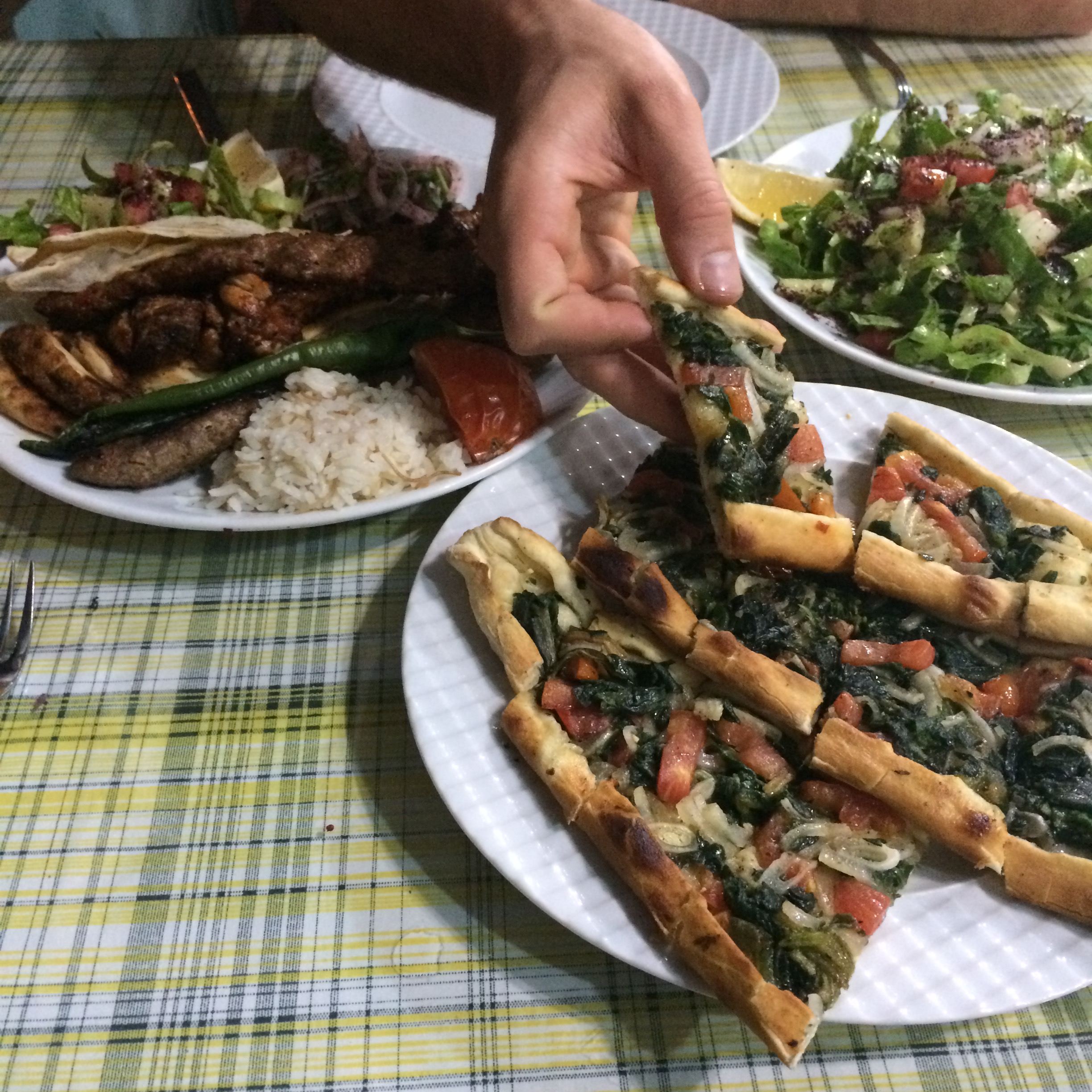 Hands down our favourite meal in Turkey so far was in the ol’ faithful Scumbet. Once again trip advisor recommended this time it did not fail. Cheap and traditional we even went back 2 nights later. The owner will recommend the ‘special mixed platter’ for you and most likely won’t take no for an answer. The first time we knocked him back because of our previous platter experiences and we simply weren’t that hungry. Rookie – we got the second rate attention for the rest of the night. Not making the same mistake we got his ever so special platter the next time and it was DELISH. Personally not THAT great value for money but a nice was to taste the best of Turkey’s traditional cuisine. Oh and don’t forget to rate him on trip advisor but I am sure he will remind you once, twice even thrice.